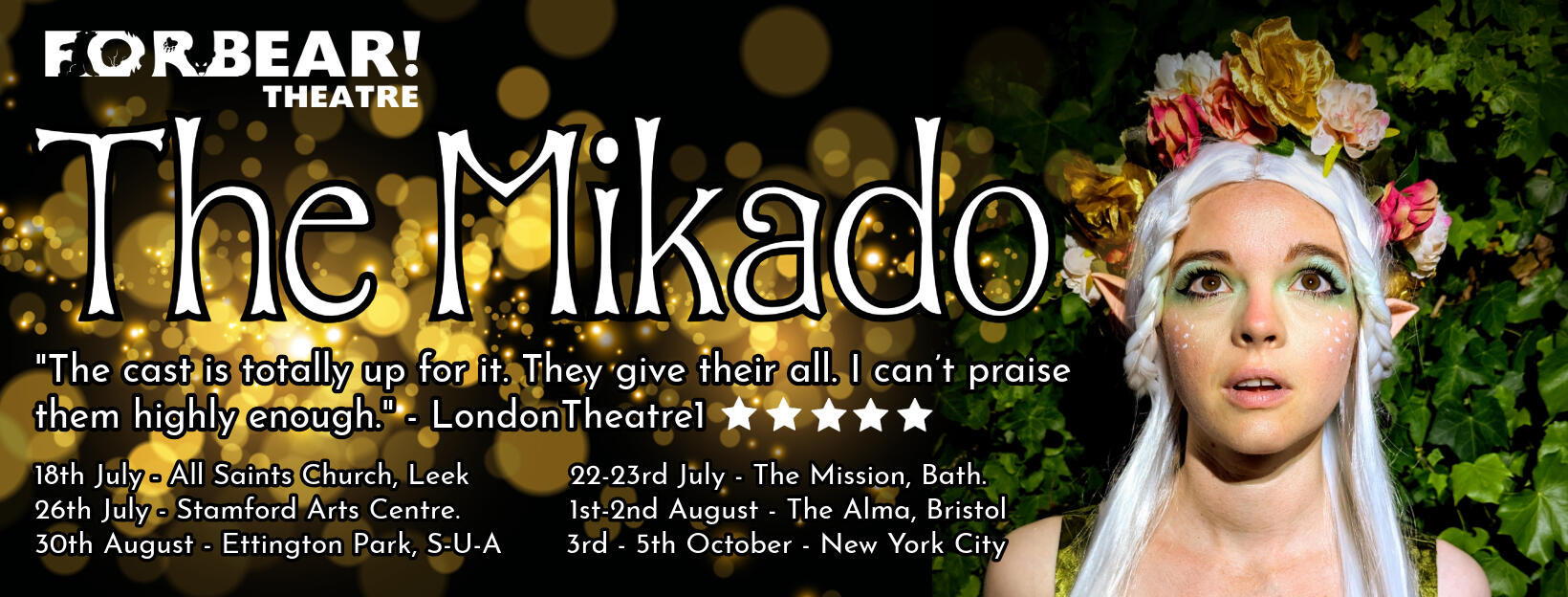 Forbear's fantasy reimagining of The Mikado toured the UK through the Summer of 2025 before a transfer to New York City in Autumn 2025.Praise for this production:
